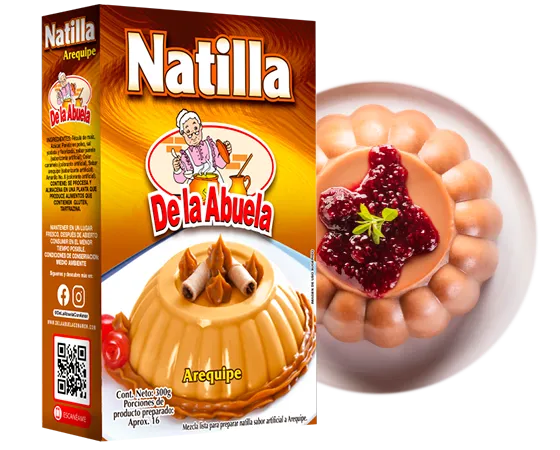 Disuelve el contenido de una caja de Natilla De la Abuela de tu sabor preferido, en 1 taza de leche hasta obtener una mezcla homogénea.